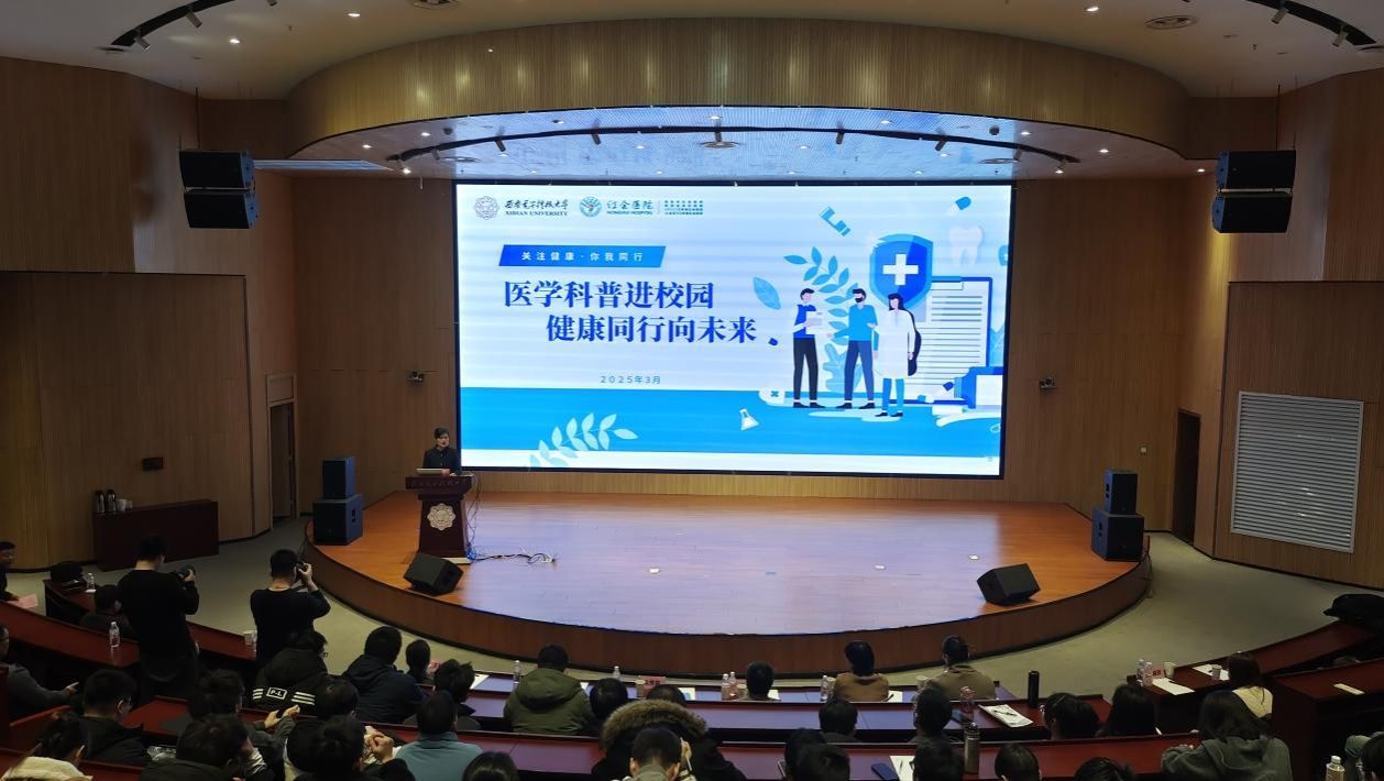 (通讯员 边晟世)为提升师生健康意识,普及医学知识,助力校园健康文化建设。3月7日下午,由校工会、西安市红会医院主办,太阳集团tyc539承办的“医学科普进校园 健康同行向未来”活动如期开展。此次活动特邀西安市红会医院权威专家团队,为师生们呈上一场兼具科学性与实用性、生动且有趣的健康知识盛宴。活动由数学与统计公司党委书记杨生海主持,公司百余名师生代表参加此次活动。