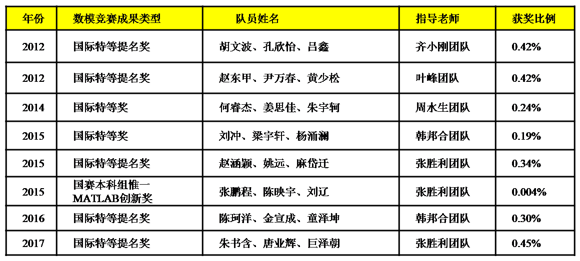 表2:12-17年公司数学建模竞赛突出成绩