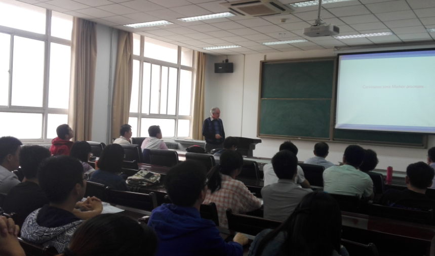 在系列活动中,Vatutin教授分别做了以《Extinction of populations: from dynasties to North Atlantic whales》、《Limit theorems and reduced processes》、《Continuous time Markov Processes》、《Multitype branching processes and its applications in token-ring LAN》和《Branching processes in random environment》为主题的精彩讲座。从研究姓氏的灭绝谈分枝过程的起源,从朝代的更迭到北大西洋露脊鲸的生存与灭绝,从传染病的控制模型到根据线粒体DNA建模查找共同的最近的祖先,从排队系统抽象出分枝过程到令牌环LAN和WLAN技术的分枝过程建模, Vatutin教授以诸多现实材料阐述了分枝过程的广泛、深入应用。