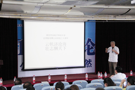 郝跃院士致辞时指出,在一个工科院校较早地拿到数学博士点是非常不容易的,当年获得应用数学博士点的时候,我们公司是很自豪的,数学对工科,特别是电子信息领域具有重要的支撑作用。他对公司数学学科20年来取得的成绩予以肯定,并表示公司今后还要进一步加强对数学等理科的支持。