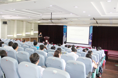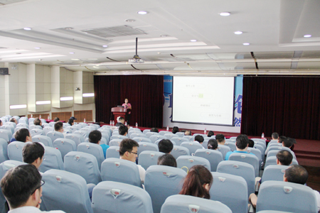 学术报告阶段,首先由陕西师大原副董事长杜鸿科教授介绍自己献身数学研究的一些体会。杜教授作为陕西数学界目前惟一坚持在科研一线的老前辈,他持之以恒钻研学术的精神和对数学研究的独到见解使参会人员深受教益。咸阳师院舒世昌教授、西电杨丹丹博士、宝鸡文理公司李剑教授、西工大张胜贵教授、西北大学郭真华教授、西电周水生教授、西安交大徐凤敏教授分别介绍了各自最新的研究成果。西安交大朱旭教授介绍了通过数学建模培养员工实践创新能力的经验。如何处理科研与教学的关系是青年数学教师非常关心的一个话题,曾获西电青年教师讲课竞赛一等奖且科研成绩喜人的青年教师冯晓莉副教授现身说法,讲述了自己的感受和体会。