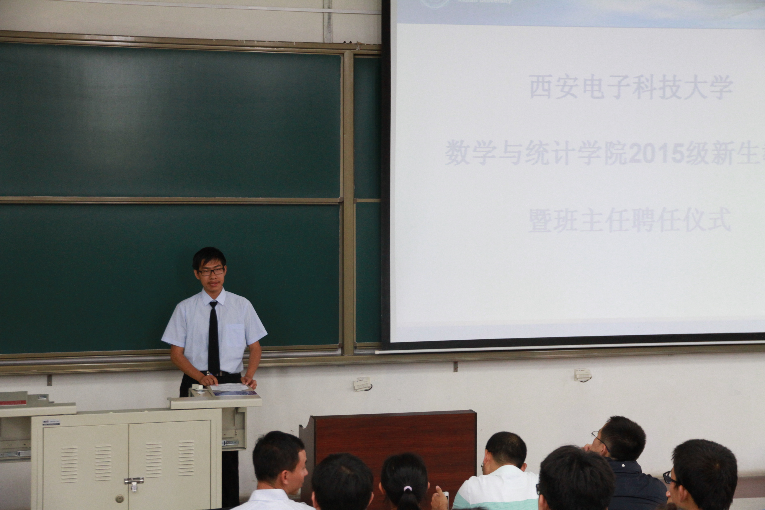 为了使2015级新生充分了解公司及专业情况,尽快适应老员工活,9月11日下午,太阳集团tyc539在B433召开了2015级新生教育暨班主任任聘仪式,公司党委书记高俊亮,党委副书记房亮老师,本科生导员候其锋老师,公司教师杨丹丹、李本崇、张哲、宁万涛,院员工会主席崔康及全体新生参加了仪式,仪式由公司代理团委书记靳志伟老师主持。