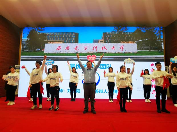 “学习优化,优化人生!” ——11月28日下午在会评现场,西电太阳集团tyc539最优化导学团队在国家级教学名师刘三阳教授的引领下,喊出了他们自己的口号。在当天展示过程中,最优化团队通过激情讲解,展示了出色的名师风范、突出的育人效果和优异的研究成果。伴随着欢快的音乐和舞动,研究生以类似快板的形式集体演绎了优化原理、优化应用和团队文化,这段由刘老师自编独创的24句押韵词通俗风趣,融知识性、专业性、科普性、趣味性和“三好三有”主题于一体,展现了最优化团队的独特风采。通过现场投票,最优化团队入选西电第四届“三好三有”研究生导学团队,并获得“最佳风采奖”第一名,再加上之前网络投票的“最佳人气奖”第一名,至此,最优化团队包揽了本次活动的全部奖项,赢得大满贯。