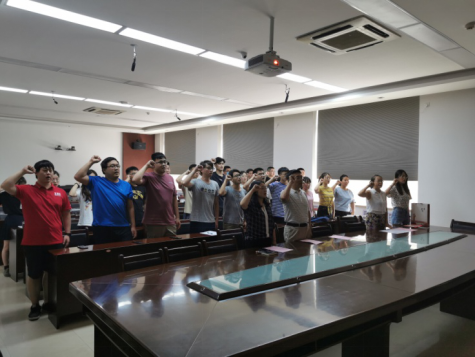 表彰大会在雄壮的国歌声中展开,在支部宣传委员傅泽的带领下,全体党员面向党旗,重温入党誓词,回忆入党时许下的承诺与责任,不负心中的热血。接着,支部书记赵春霞老师就本学期支部工作进行总结。“支部以育人为核心,以思想为主导,以组织为保障,以党员发展、培养为工作重点,不断提高同学们思想素质和科学文化素质,真正发挥了党支部培养、培育人才的摇篮作用。”赵老师对支部工作的总结客观而诚恳,同学们对支部的发展感到欣喜与自豪,报以热烈的掌声。
