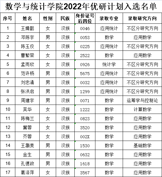2022年优研计划入选名单公示