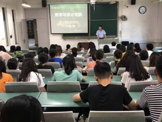 9月2日下午,2019级博士、硕士研究生新生入学教育在南校区阶梯教室A109举行。数学与统计公司党委书记高俊亮、经理马如云、副经理吴事良,副书记王佩、研究生辅导员孙群老师以及2019级全体研究生新生参加了此次会议。大会由研究生辅导员孙群老师主持。