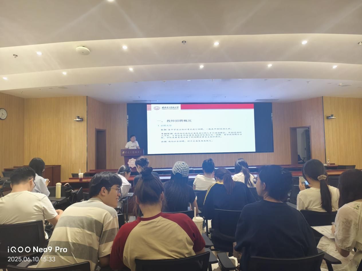 目前已签约西安市铁一中的安达则围绕教师招聘展开分享。他介绍校招、市招、区招三种途径,分析不同招聘类型对学历、师范背景、教团队格证的要求,提醒关注有关部门院校招聘政策。教师招聘流程包括投递、审查、笔试、面试、体检等,笔试难度大,需结合高中教材与历年试题准备。面试含试讲与结构化问答,要练习板书、课堂语言与应变能力。他建议重视招聘信息收集,积极参与校招,通过实习积累教学经验,提升竞争力,勇敢迎接挑战。