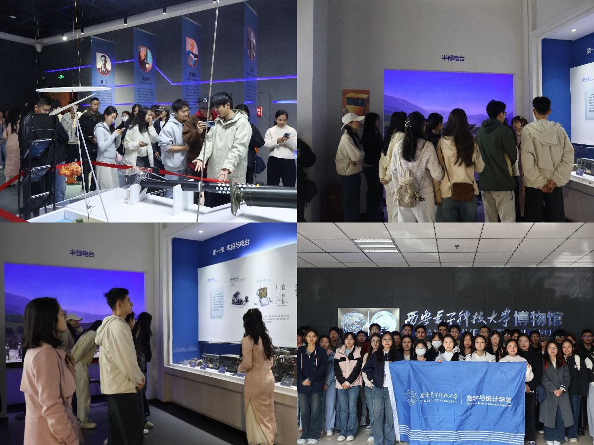 随后,同学们来到西电博物馆。这里陈列的通信、雷达、计算机等领域的丰富展品,构成了一部立体的中国电子信息科技发展史。从早期的电台、发报机到先进的卫星通信装置,从庞大的雷达天线到微小的集成电路芯片,每一件展品都无声地诉说着科技创新的力量,都与数学和统计学的基础支撑密不可分。