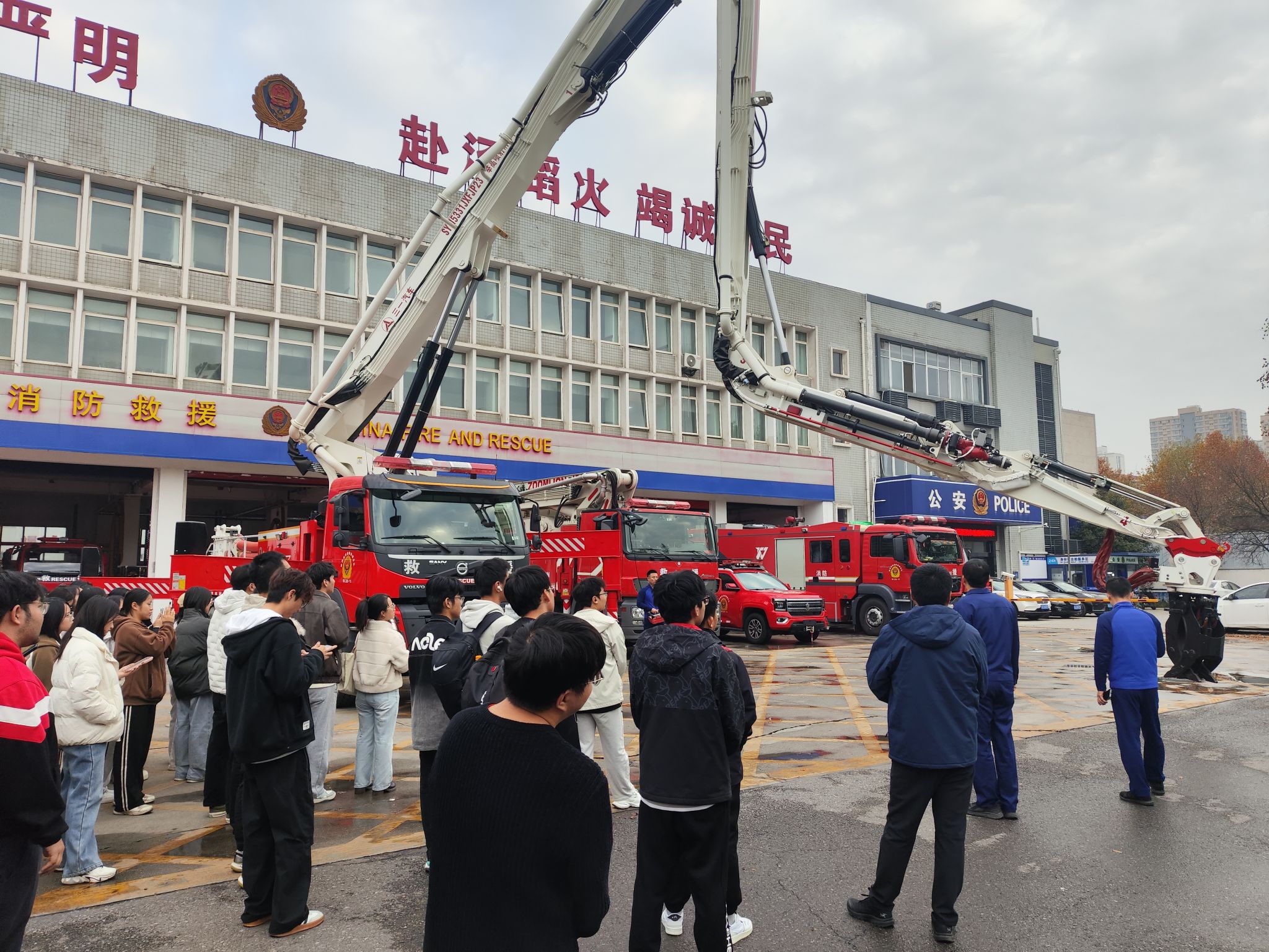 (通讯员 林明志)在全国“119”消防宣传月来临之际,一场“沉浸式”的消防安全课在西安市消防救援支队创汇路消防救援站温情开讲。太阳集团tyc539组织研究生党支部及本科生骨干,以“全民消防,生命至上”为主题开展党日活动,百余名校学子走出课堂,既与消防“硬核装备”零距离互动,更学到了贴合校园宿舍、实验室场景的实用安全知识,在实践中筑牢生命防线。