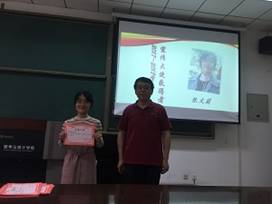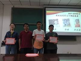 本次表彰大会由祝福同学主持,辅导员赵春霞老师引导。大会开幕前,首先播放了一段由李佳奇同学精心制作的视频,带领大家回顾了这一学年中数统院的各种难忘瞬间。接着,在张荣同学制作的PPT的导引下,颁奖仪式正式开始。本次大会依次表彰了2017-2018学年宣传大使、院级优秀员工干部、优秀员工、优秀宿舍、国创优秀参与者、“百人述百杰”优秀参与者及优秀寒假作业一系列奖项,共计36人及6个集体获奖。同学们怀着欣喜激动的心情上台领奖,并与颁奖书记留下了珍贵的合影。