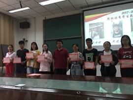 5月19日下午,2017-2018学年表彰大会在信远楼2区206教室成功举行。与会人员有院领导高书记、王书记,辅导员赵春霞、常芳丽老师,17级全体员工齐聚一堂,共同见证这光荣的时刻。