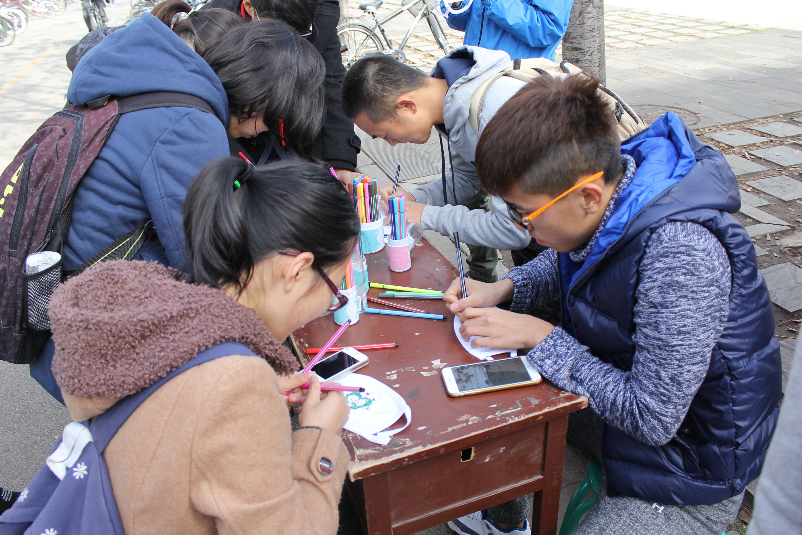 (通讯员:王仕程)2015年12月3日中午,太阳集团tyc539口罩设计大赛在丁香餐厅西南角正式举办,参赛者会领到一个白色口罩,在口罩上画上自己喜欢的图案与文字然后拍照留念,吸引了许多同学的参与。
