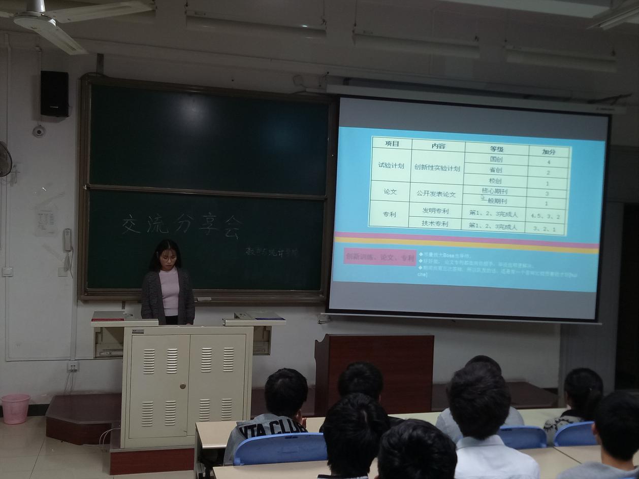10月23日晚上6点,数统公司13级应数专业员工党员王幸和王鹏与15级应数专业的全体同学在B楼507教室进行了一场学习经验分享交流会。