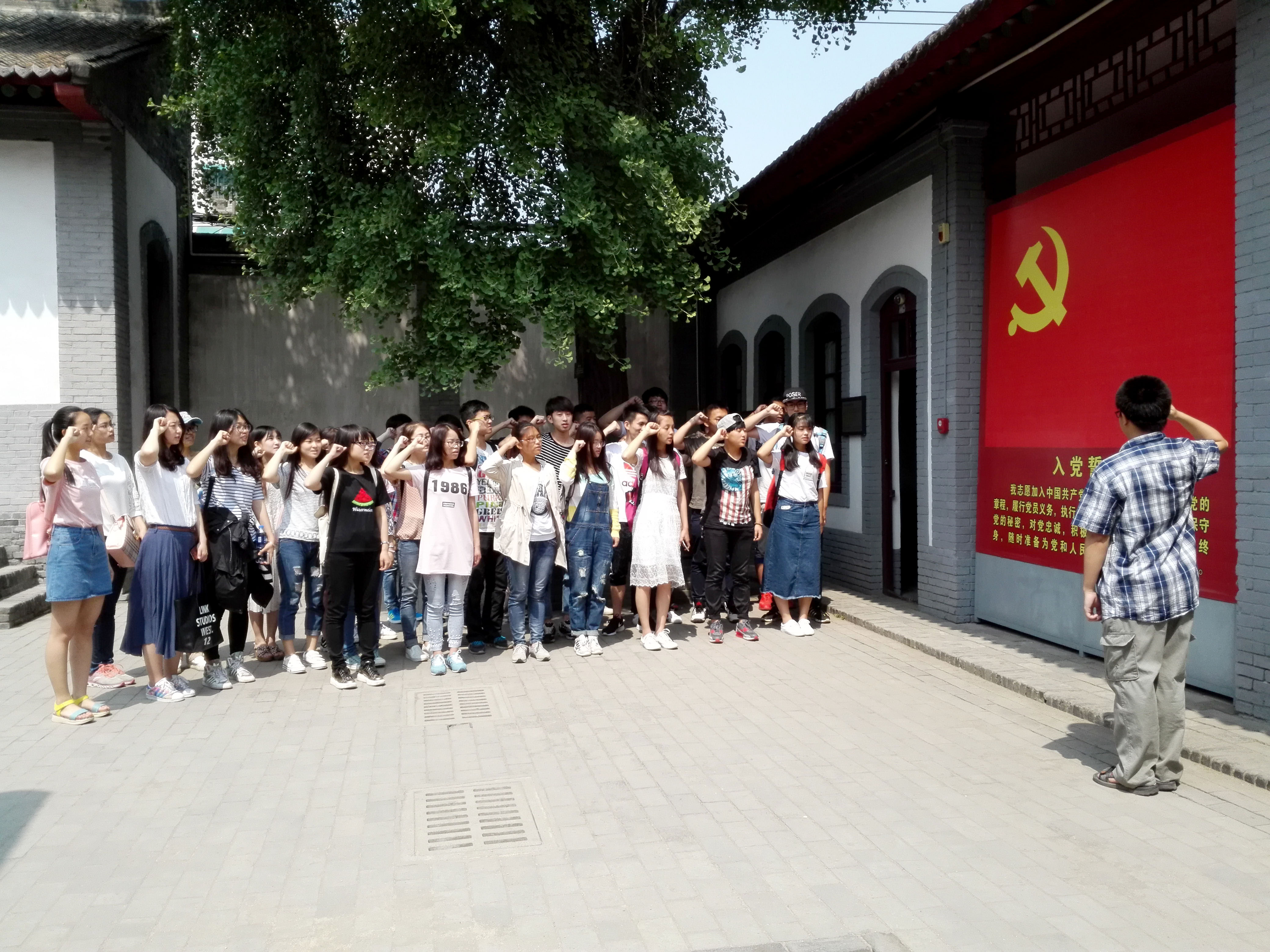 参观结束后,同学们在八路军办事处的党旗下进行入党宣誓,坚定了自己为共产主义事业贡献力量的决心。在归途的校车上,又由史若画同学为大家讲述了有关八办的小故事,更加深了大家的印象。