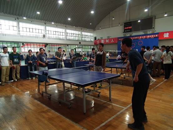 下午14:00,比赛正式开幕,在宣读完比赛规则后,精彩纷呈的乒乓球赛正式打响。比赛分为小组赛、排位赛、决胜赛三个阶段,各代表队都拿出了最好的状态,打出了水平,赛出了风格,整个比赛过程高潮迭起,选手们一个个精彩的防守和扣杀都引起现场观众的阵阵喝彩。老师与员工们打成一片,员工与老师组合的双打比赛尤为精彩,场外欢呼声不断,甚至有些老师临时当起了教练,为参赛队员出谋划策,师生间的距离感荡然无存,比赛在夏日的午后充满了暖意。下午18:00,所有比赛项目结束,最后举行了颁奖仪式并合影留念,本届师生乒乓球交流赛在欢笑和掌声中落下帷幕。
