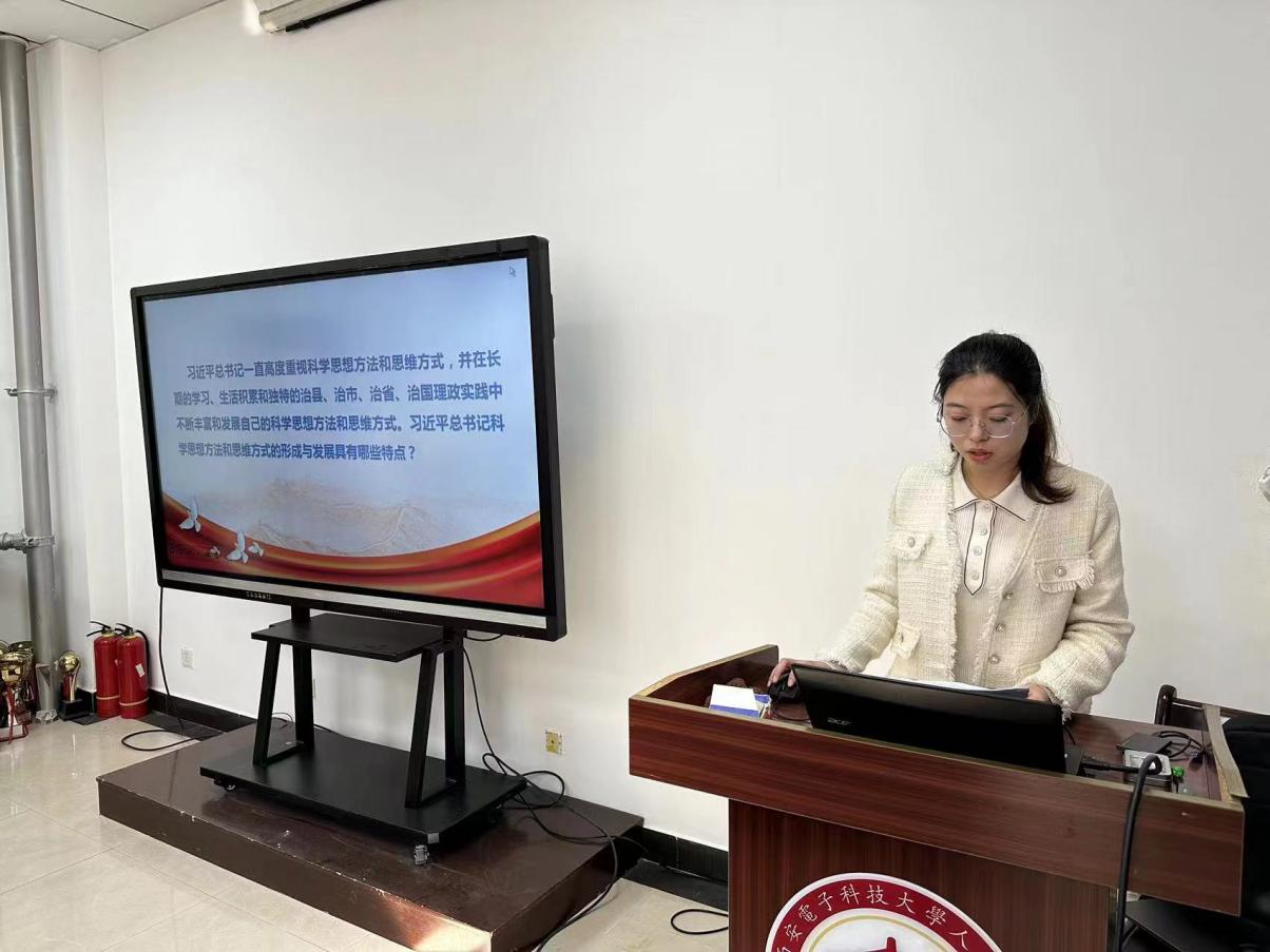 郭方杰以“习近平总书记科学思想方法和思维方式形成发展的特点”为主题进行宣讲,习近平总书记一直高度重视科学思想方法和思维方式,并在长期的学习、生活积累和独特的治县、治市、治省、治国理政实践中不断丰富和发展自己的科学思想方法和思维方式。郭方杰从“早”、“深”、“实”、“全”四个方面讨论了其形成与发展的特点,并向大家讲述了习近平总书记青年时期在陕北农村上山下乡以及在河北正定县工作等故事。习近平新时代中国特色社会主义思想对马克思主义思想方法和思维方式做出了原创性贡献,开拓了中国共产党人科学思想方法和思维方式的新境界,要把握好习近平新时代中国特色社会主义思想的世界观和方法论,坚持好、运用好贯穿其中的立场观点方法,自觉用党的创新理论武装头脑、指导实践、推动工作!