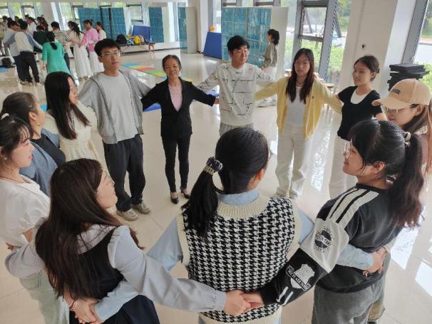随后将在场同学分成两组,进行了“春去秋来,花开花落”和“穿针引线”的游戏活动。通过这两个游戏让同学们深刻理解“友谊、合作、感恩、拼搏”。在活动中,同学们进行了情感的抒发、情绪的宣泄,感受到了合作的真诚,也借此机会增进了同学之间的友情和信任。